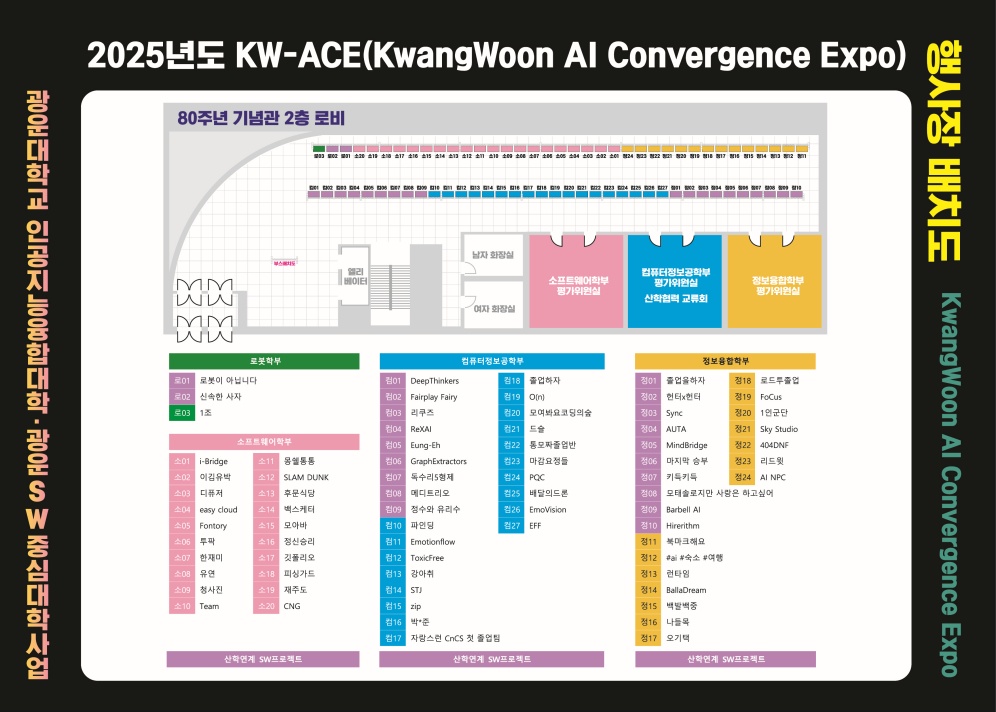 이번 졸업작품전시회는 인공지능융합대학 소속 학부 및 제 9회 산학연계 SW프로젝트전시회와 공동 진행됩니다.
