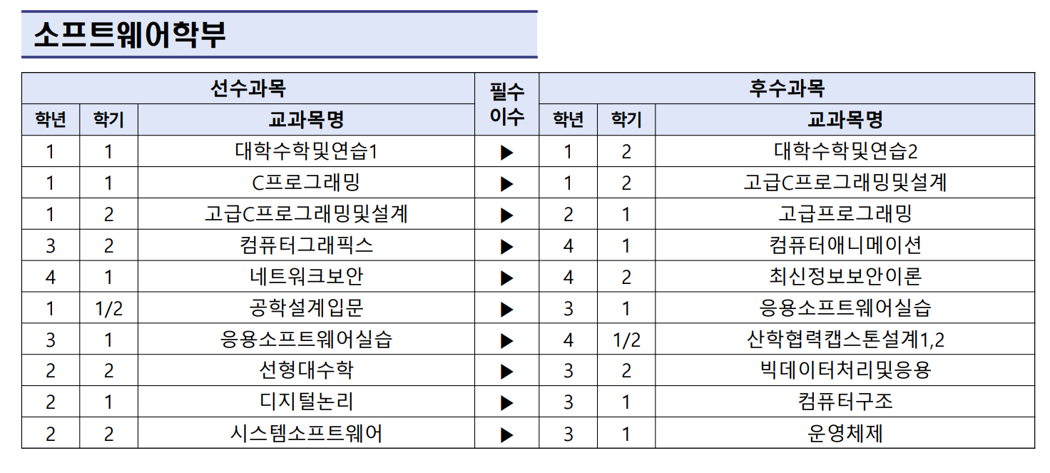 [2026학년도 1학기 이수체계 준수제도 및 선수 교과목 미이수자 상담 시행 안내] 1. 소프트웨어학부 선.후수 필수 지정 교과목  2. 일정 및 방법